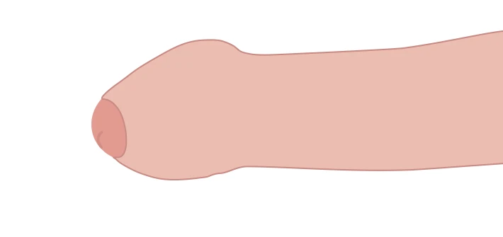 真性包茎(しんせいほうけい)とは、包皮の先端が極端に狭く、亀頭(ペニスの先端部分)をまったく露出できない状態を指します。仮性包茎のように手で包皮を引いても亀頭が出ないため、清潔を保ちにくく、炎症や感染のリスクが高いのが特徴です。
